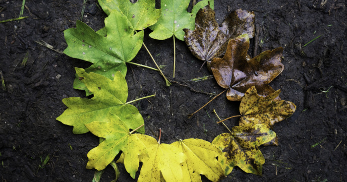 How to express time through a photo? I had the idea to pick up some leaves on the ground in the yard and arrange them to make a circle of seasons.