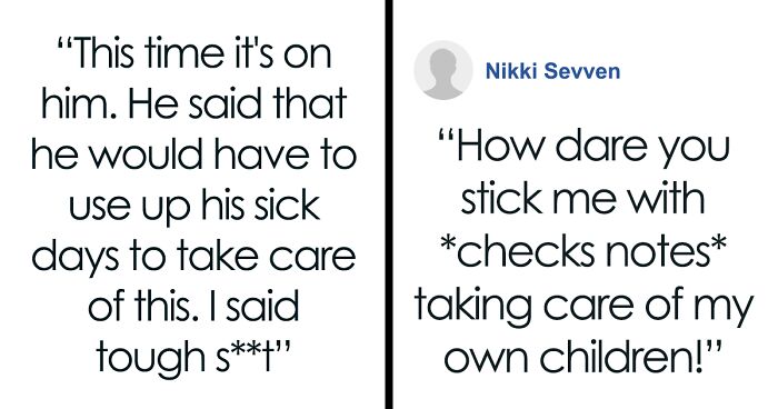 Share on Facebook"How dare you stick me with *checks notes* taking care of my own children!"