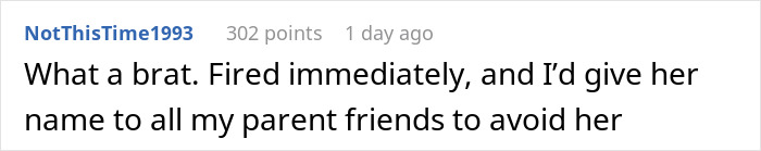 Load More Replies...What a brat. Not only does she post a picture of his kid without permission, she doesn't even listen or try to understand when the dad tells her not to. Fire her. I'm a teenager and I would never do that