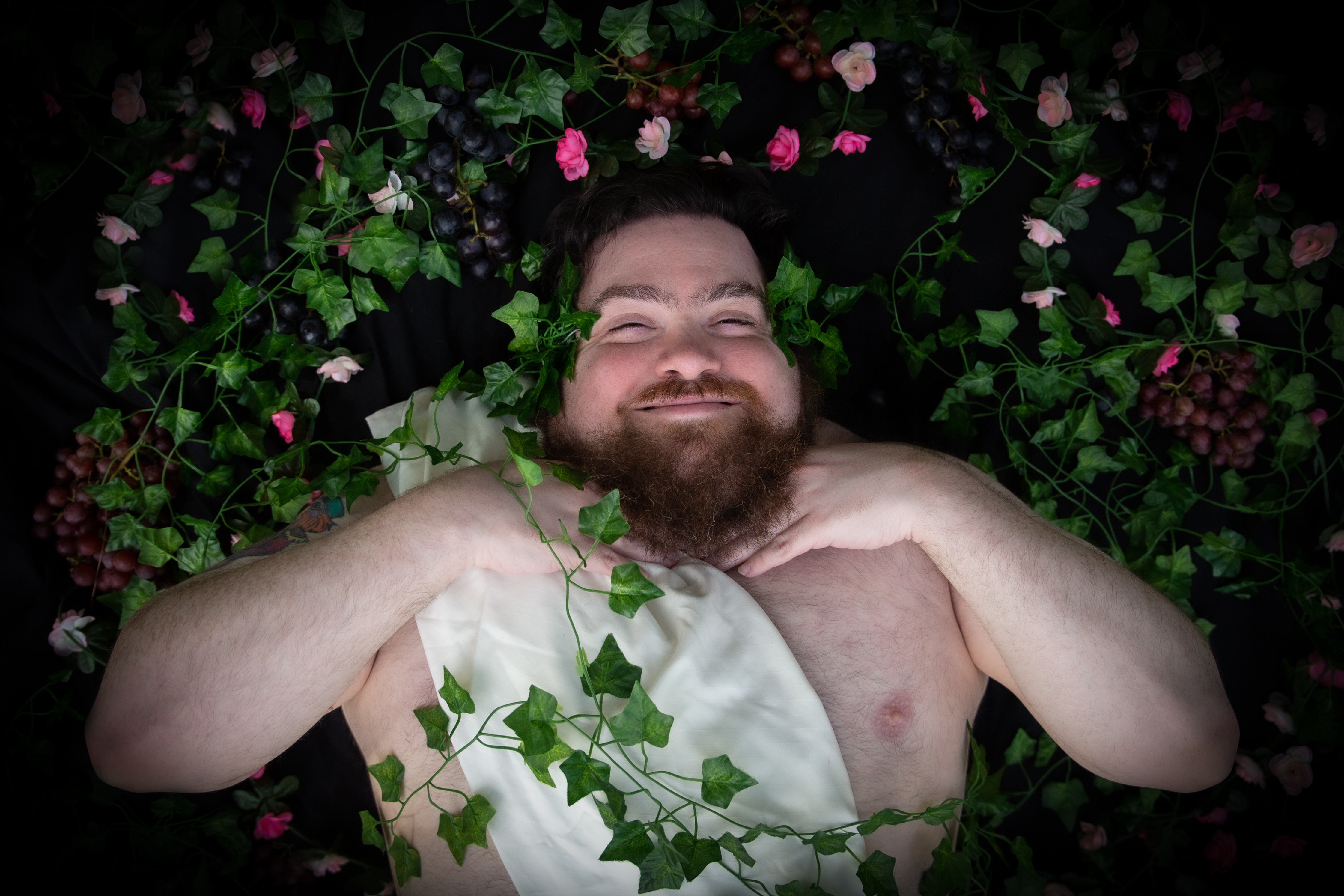 My dear brave and silly fiancé allowed me to create my rendition of Bacchus.