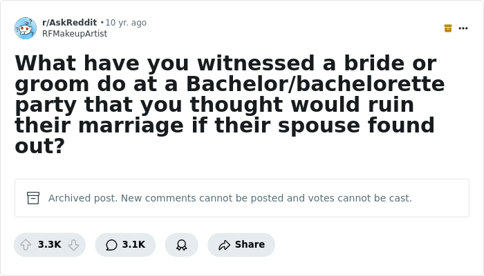 The excesses can be so extreme that Reddit user RFMakeupArtist once posed a question, inviting people to share stories of bach parties so wild, they could jeopardize a marriage if a partner knew what transpired. It received a flood of scandalous responses, and the tales vividly illustrate the fine line between innocent fun and outright betrayal.
