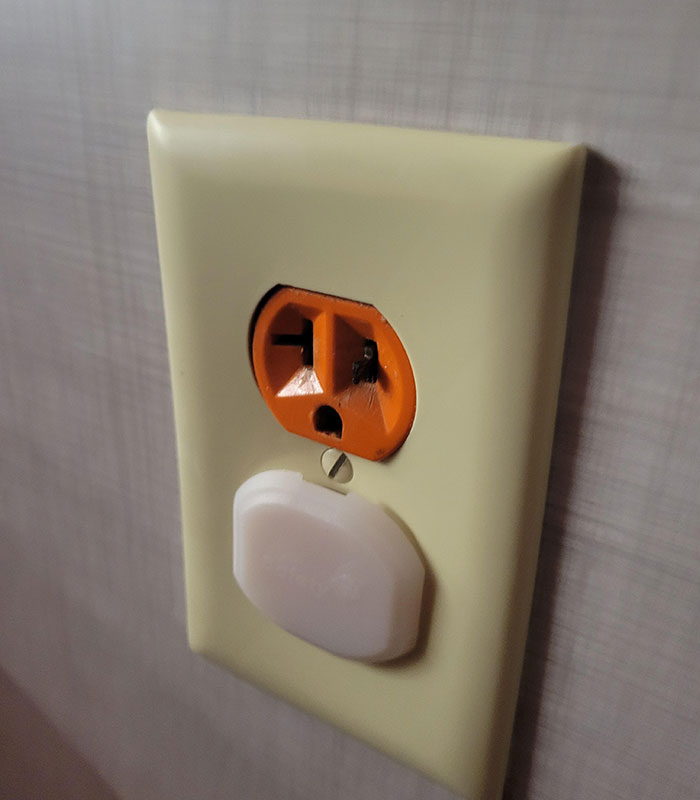 Yes, that's a metal prong in that electric socket. I really hope no one ends up in the hospital because of this.