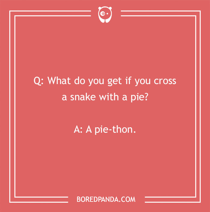 What do you get if you cross a snake with a pie? A pie-thon.