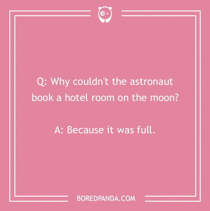 Why couldn't the astronaut book a hotel room on the moon? Because it was full.