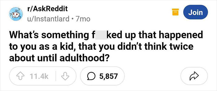 But for these Redditors, childhood wasn’t just scraped knees and bedtime tantrums. They went through truly disturbing experiences without realizing just how messed up they were until adulthood. We’ve gathered some of the most shocking ones below—just a heads-up, they’re not for the faint of heart.
