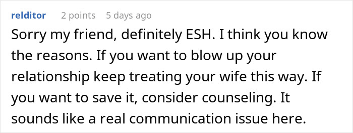 We would love to hear your thoughts on this story in the comments below, pandas. Do you think this man was justified in leaving his wife at home without a word? Feel free to share, and then if you’re interested in checking out another Bored Panda article discussing spousal conflicts, look no further than right here.