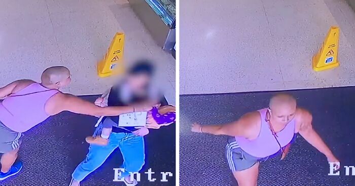 Footage showed the attacker walking up to a baby, who was held in her mother’s arms, and forcefully hitting her in the face, causing the toddler to sustain numerous facial injuries.