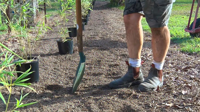 Step 4. To contain the bamboo more effectively, dig out 40 to 60-centimeter trench-like holes around it and line them up with sturdy barriers like plastic rhizome barriers specifically designed for bamboo.