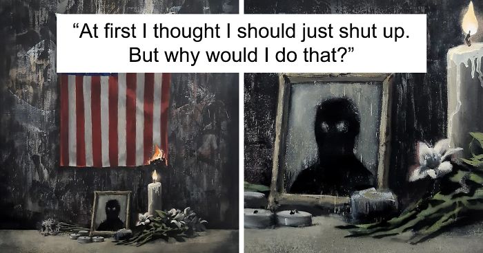 Load More Replies...The contrasts in the work of black and white are purposeful to show the racial divide. The figure in the picture is sort of an anyman figure, meaning it could be any African American because many have been victims. The flowers and candles represent the thoughts and condolences, but they are not actions. With out action it will continue, hence the candle burning the flag. The flag and the flame are the only part of the painting in full color, and are subject of this work, and in this case, the root this situation.