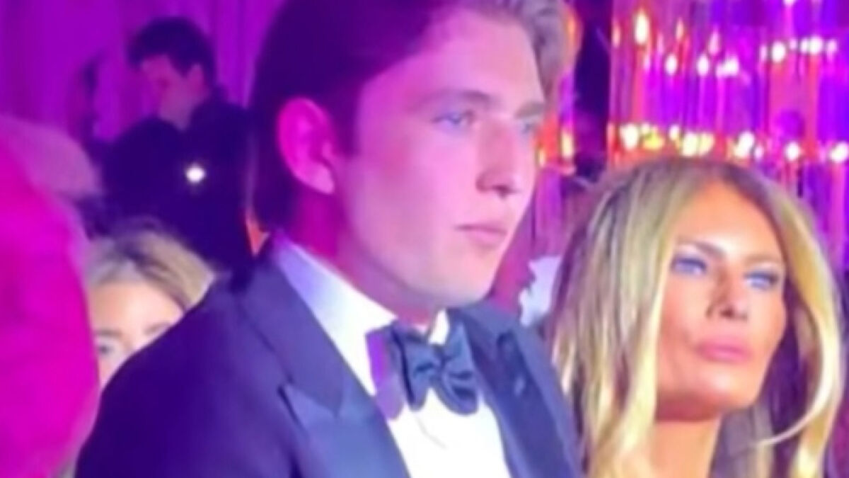 The footage, filmed during New Year’s celebrations at Mar-a-Lago, shows Barron standing beside his parents as guests dance around them. At one point, a woman tries to encourage him to join but he ignores her, keeping close to his mother and avoiding interaction.