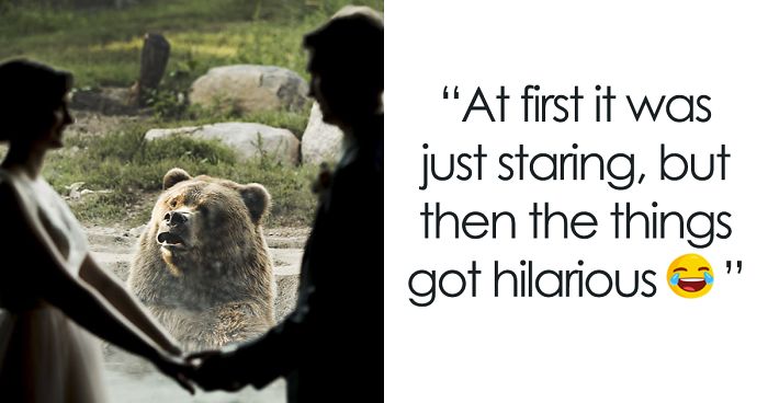 The Internet Is Cracking Up Over This Bear’s Reaction To This Couple Getting Married At The Zoo (3 Pics)