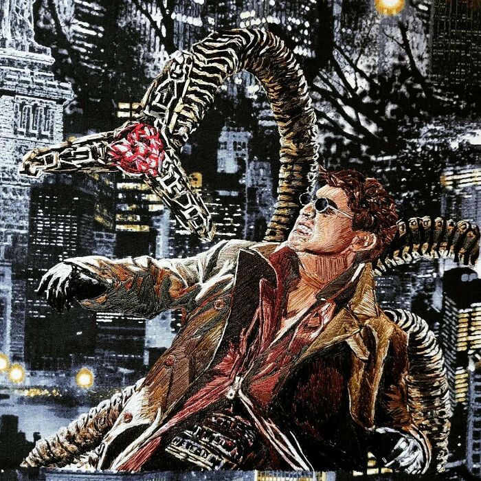 And He's Done. Alfred Molina As Doctor Octopus In Embroidery. My Son Set Me The Challenge And I Do Like A Challenge. 45 Hours Of Stitchery