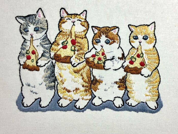 Full-Length Hand Embroidery Of A Cat Is Ready