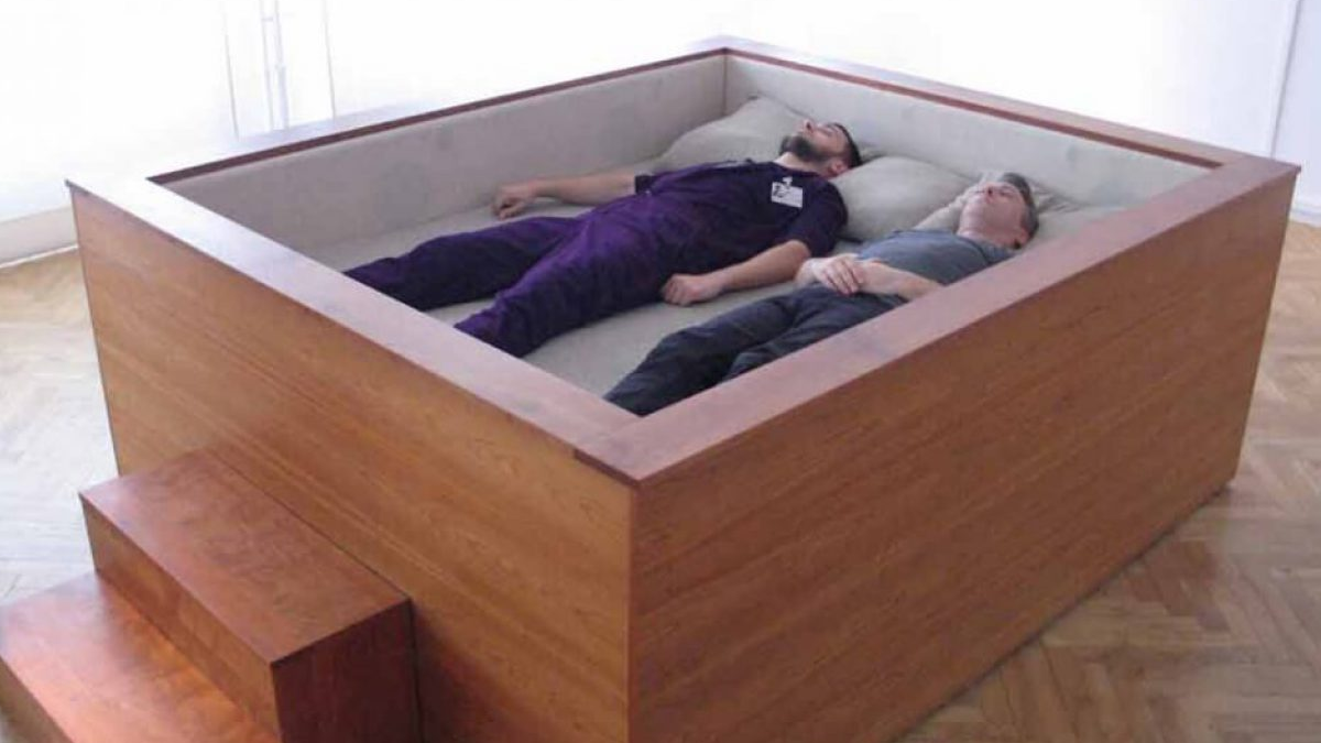 It looks like one of those drone-shots in a zombie-movie. On the bed: the few last humans. Underneath: the wave of zombies storming the last hideout. Resistance will be ultimately futile...