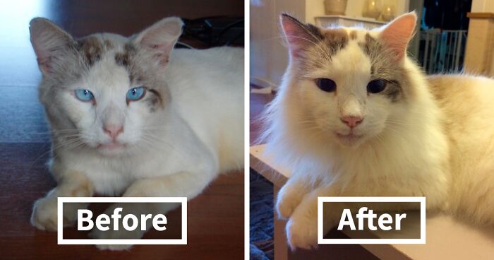 Below are some of the most inspirational and emotional photos of cats before and after adoption as shared on the tear-jerking r/BeforeNAfterAdoption subreddit. More happy endings of animals who were happily adopted can be found in our previous posts here, here and here.