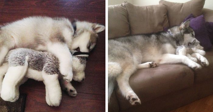Meet Luca, the Alaskan Malamute that loves to destroy her toys! Karissa Lerch, from Durham in North Carolina, always wanted a dog, but couldn’t afford one while in college. She got a toy dog from Toys-R-Us instead, and when she could finally afford a dog, gifted the toy to Luca. The two became inseparable.