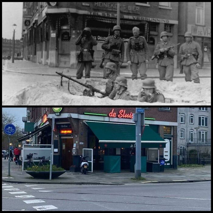 The subreddit r/OldPhotosInRealLife is pretty much the closest thing we have to a time machine. Its 596k members are constantly comparing past and present through rephotography — the act of taking a photo of a place that has already been photographed before. The end result is like a portal, fusing together two different periods.