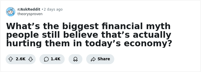 About a week ago, a thread appeared in the AskReddit community, the author of which asked people the question: "What’s the biggest financial myth people still believe that’s actually hurting them in today’s economy?"