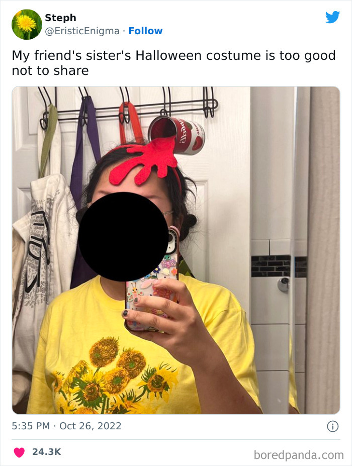 And this year, just like previous years, people were more than happy to take it a step further when creating their spooky looks. From the Gossip Girl meme and the real-life Mr. Proper incarnation to Van Gogh’s sunflowers infamously vandalized by Just Stop Oil activists, there’s everything in this collection of insane Halloween costumes: 2022 edition–the sheer level of quirkiness and absolute relevance to the times we’re living in.