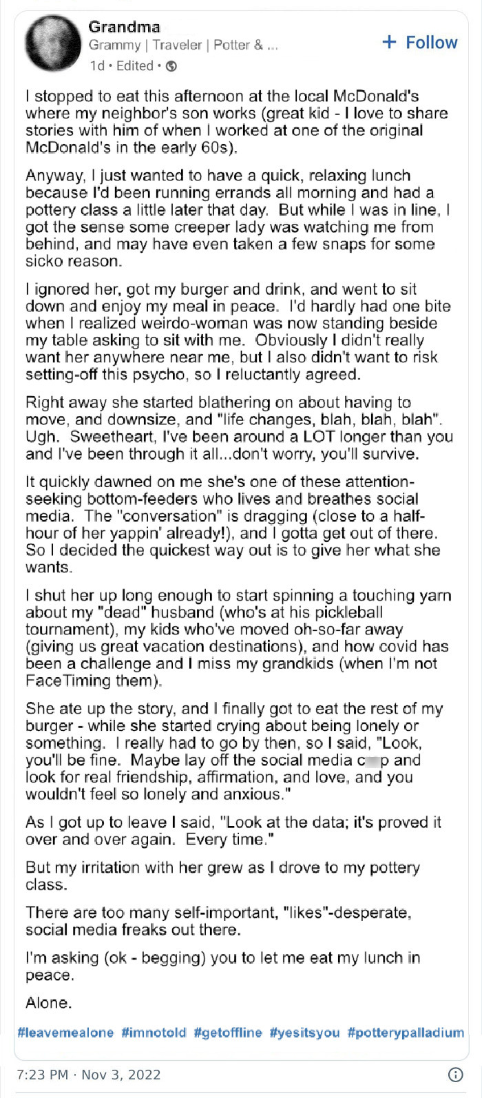 Way to use your grandma's death to promote your business. And you think you don't still live in hustle culture?