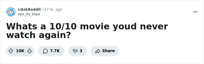 The original thread appeared in the AskReddit community just a couple of days ago, but has already racked up over 12K upvotes with around 9.1K various comments. No, there are not that many films listed by netizens, but the discussion itself was vivid and memorable.
