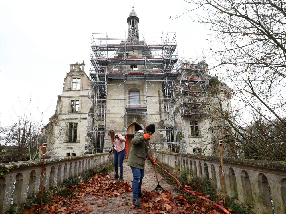 NO IT IS NOT ANYMORE : Château de la Mothe-Chandeniers : "In December 2017, a French startup organized a crowdfunding campaign site, and 27,190 people having to pay at least €50 each joined the cause, raising €1,600,000, to purchase the castle with the aim of restoring it." champdenie...038dcb.jpg