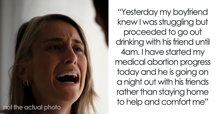 She adds that, despite knowing she was struggling, her boyfriend stayed out drinking with his friend until 4AM. Adding insult to injury, now that she’s started the medical abortion process and needs the most support, he’s planning another night out, which pushed OP over the edge.