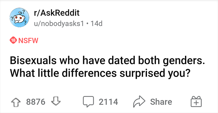 “Bisexuals Who Have Dated Both Genders – What Little Differences Surprised You?” (25 Answers)