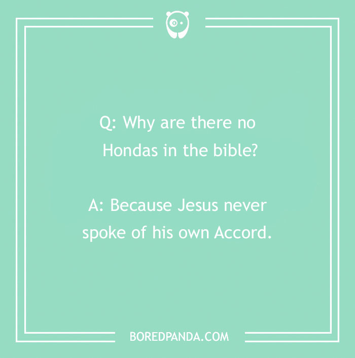 How did the 12 disciples travel? By driving a Honda. The Bible says they were all in one Accord.