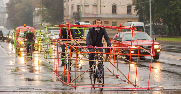 To celebrate International No Car Day (Sept. 22), some clever Latvian bicyclists from the Let’s Bike It organization dressed their bikes up as automobiles in Riga to show how much space people waste when they commute by car instead of by bike.