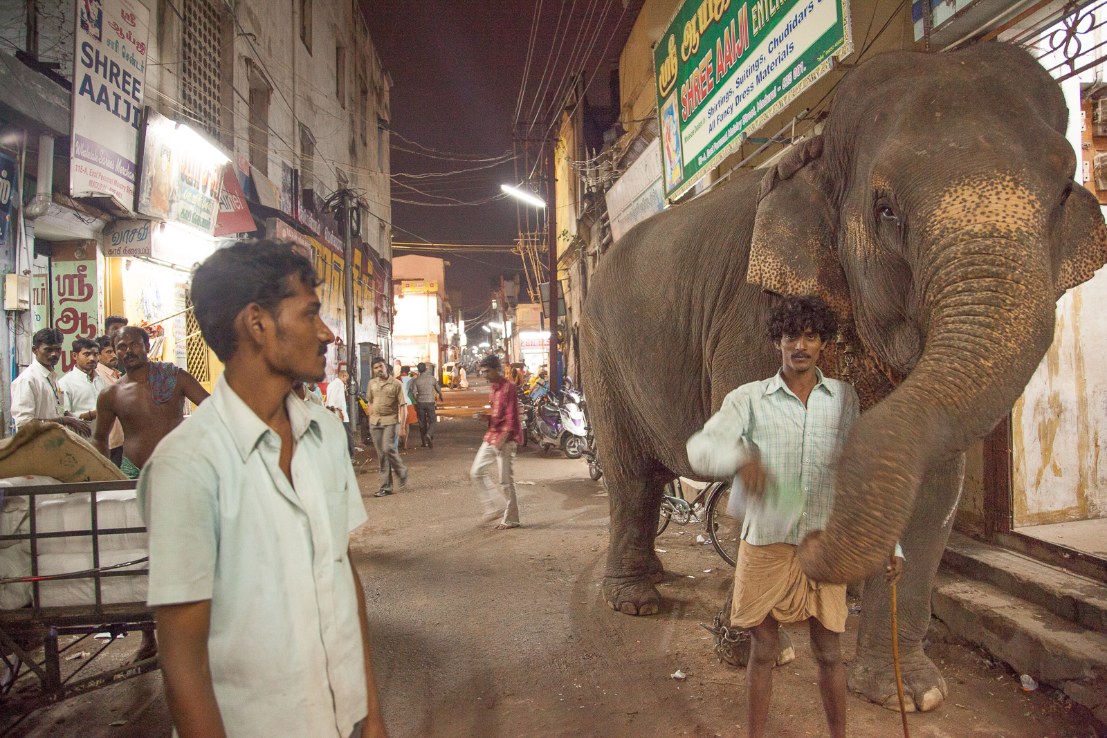 I saw elephants in the road one time in India, but I'm pretty sure it was a touristy thing and not just someone riding an elephant like they do every day.