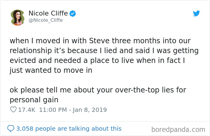 We're all guilty of lying from time to time for our own personal gain. And of course, no one's here to judge you, after all, it's a dog eat dog world so everyone deserves to do a little something to help themselves. But when you think about it, how do you separate an innocent white lie and legit nasty lie? Well, this series of tweets about people lying for personal gain will show you how far people will go in order to get what they want, and honestly, you can't really blame them, some even managed to get married to the love of their life just by fudging the truth a bit.