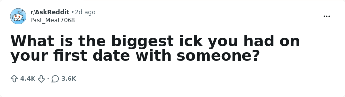 There's often a defining moment on a first date when you just know there'll be another, or there sure as hell won't. A curious netizen asked, "What is the biggest ick you had on your first date with someone? And judging by the more than 3,000 comments that came flooding in, things aren't all that rosy in the dating pool, aka shark tank.