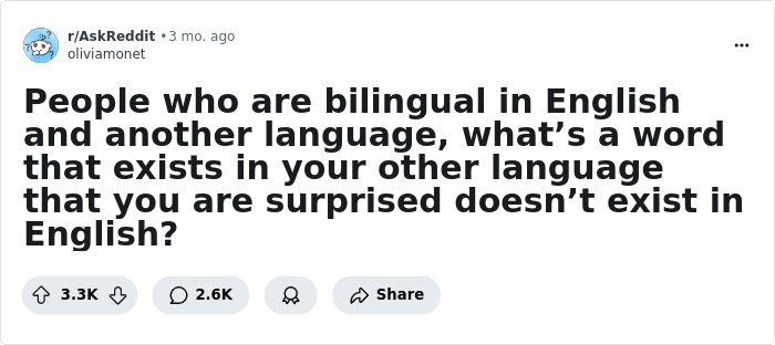 Load More Replies...Is it just me, or are a significant number of these 'English has no word for...' cases simply people with limited vocabularies? (I *will* grant you, though, that even where English *does* have such a word, it's often not in common usage.)