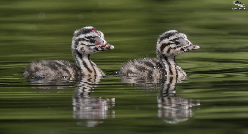 OK, I had to look this up because those babies are awesome. These are Great Crested Grebes, were almost extinct in the UK (because feathered hats), but they are making a comeback. And the chicks are rock stars! Great-Cres...feb0f4.jpg