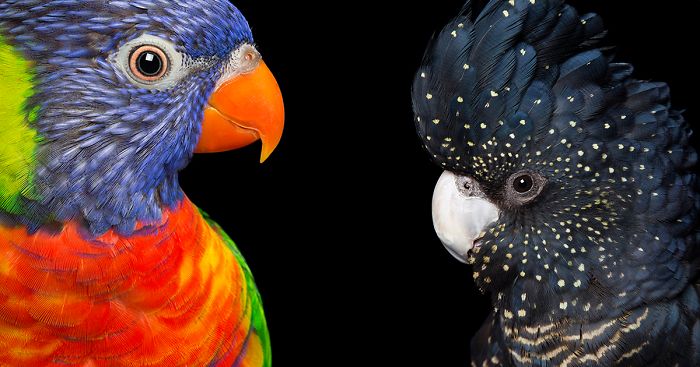 Australian professional pet and wildlife photographer Alex Cearns meets and photographs over 1300 different creatures each year. One of the subjects she loves to work with is birds. She finds them quirky, colourful, beautiful and full of personality – and her stunning bird images in her latest photo series, called Bird Face, reflect this. Alex aims to capture shots of their sweet faces filling most of her frame, as she feels this instantly conveys their character and shows their sentient nature, stating that “The cheeky glints in their eyes and the range of colors and details in their plumage are best seen up close.”