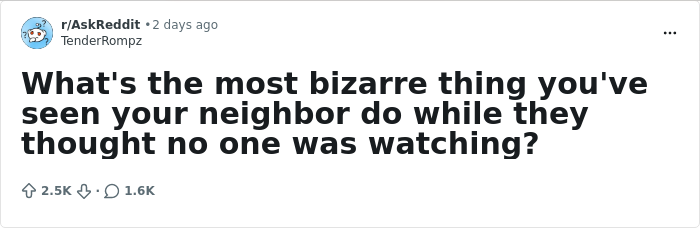 In a very entertaining online thread, internet users opened up about the most bizarre things they witnessed their neighbors do when they thought they were alone. We’ve collected their oddest, funniest, and even most surprisingly wholesome stories to share with you. And, yes, mowing your lawn while there’s a massive thunderstorm raging around you is just the tip of the iceberg!