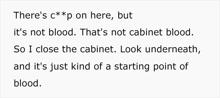 The logical thing to do was to check is if there was something in the cabinet that could be leaking, so that’s what lexyraye did and opened up the door to show that the ‘blood’ was not coming from the inside, but rather from the outside corners of the cabinet.