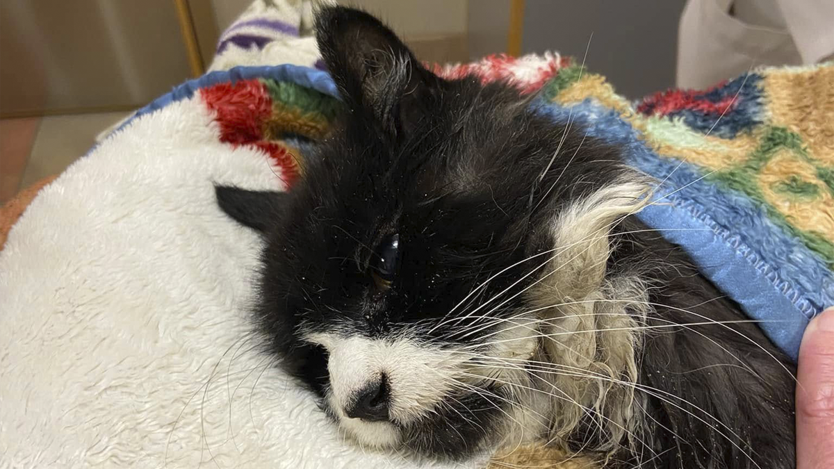 Even though the cat was no longer in immediate danger, his situation still looked quite poor. Not sure if he would make it, Westford Animal Control searched for his owners, who turned up that same afternoon. “They were able to positively identify him and then informed us that Tiki is not only 20 YEARS OLD but is also BLIND.”