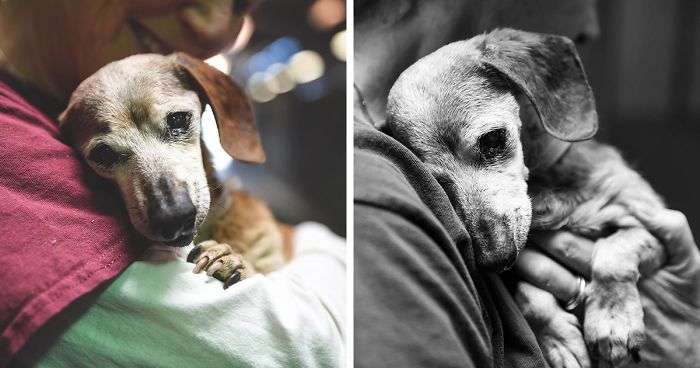Some pictures convey the raw emotions of vulnerability, heartbreak, longing and joy better than any words could. Such is the picture of a blind 18-year-old dachshund clinging to a shelter’s staff member. The doggie’s name is Muneca, and she arrived at the the Baldwin Park Animal Care Center in LA after she had lost everything – her home, her owner, and even her eyesight. So when the dog met a longtime volunteer Elaine Seamans , the neglected, flea-infested pooch jumped straight into her arms, hoping the tender moment would last forever…