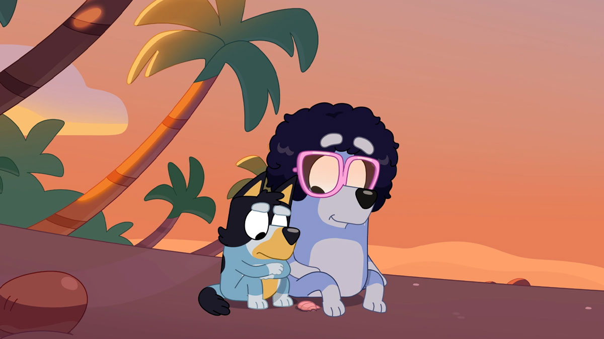 Rad is a mix of a Blue and Red Heeler who, at the beginning of the series, couldn’t visit the family as often because of his work on an oil rig. Eventually, after connecting with Frisky (Chilli’s friend) while babysitting Bluey and Bingo one night, Rad marries Frisky.