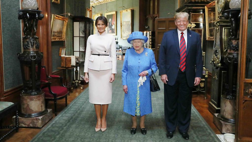 This report follows a sighting of Trump walking, leaving the British monarch trailing while he chatted away with a guard.