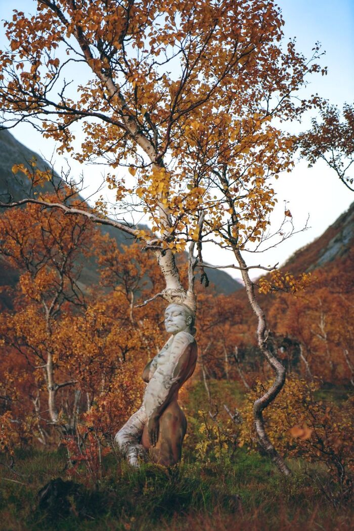 We worked over 2 weeks to deliver this art project in the extraordinary landscapes of Lofoten and Lappland, dealing with harsh windy weather and temperatures of only 0 to 4+ degrees. Working every day for over 12 hours, we were researching the right locations, light, and weather, and then painting, filming, and photographing. I had to paint very fast and stay focused so the model and dancer Małgorzata wouldn’t get too cold and the light and colors of the landscape wouldn’t change.