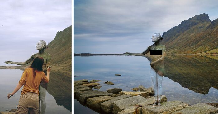 Load More Replies...Is a woman's body so scary that it should be hidden? Doesn't all humans have a mother that gave birth to them? So why is our body being censured? Is it so horrible to look at a work of art with a woman covered from head to toes in paint!? These are not pornographique images, come some should grew up.