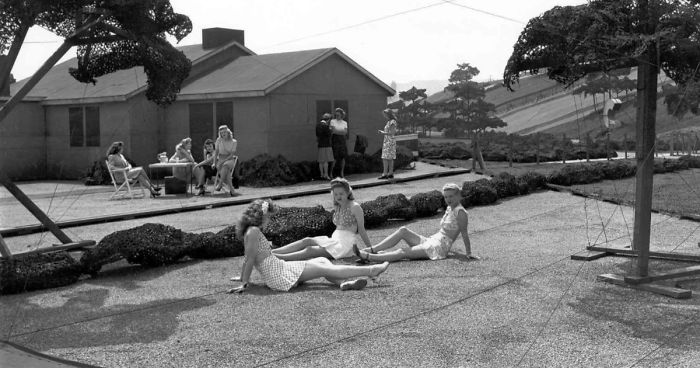 Protecting it from potential airstrikes, the movie prop “neighborhood” was constructed in 1944 and removed a year after the war. John Stewart Detlie was the Hollywood set designer who helped to hide the Boeing Plant No. 2. Using the same techniques as in movie towns, fake streets, sidewalks, trees, fences, cars, and houses were set in place to fool the would-be attackers.