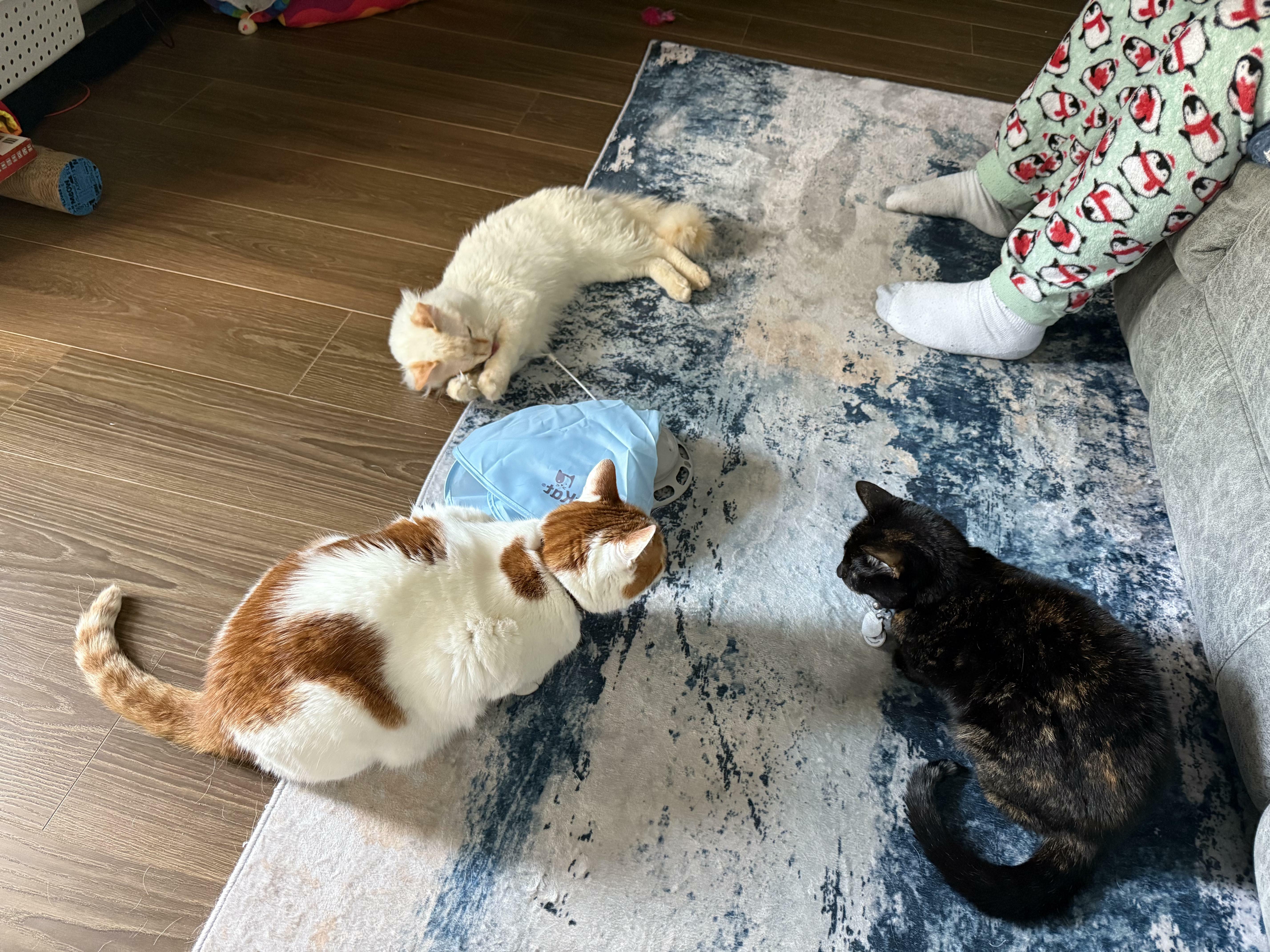 Emmet (orange and white), more recent pic of Archie and Echo (galaxy cat), Finn had just walked out of the living room, and Arizona was by my side behind the camera IMG_0720_0...5-jpeg.jpg