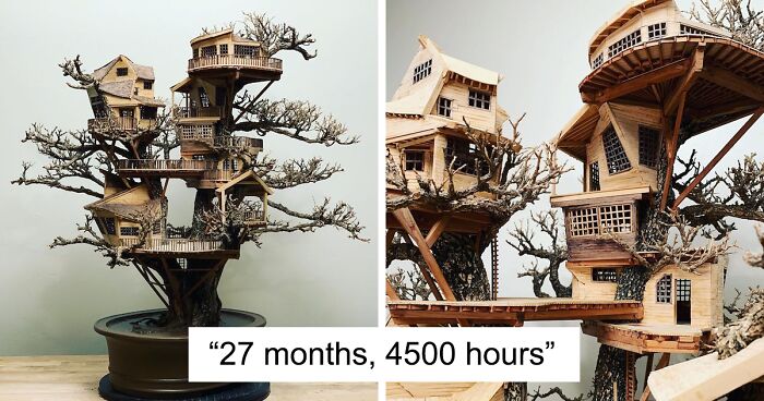 24 Photos Of Tiny Treehouses Handcrafted Within Bonsai Trees By The Late Dave Creek