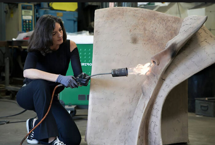 Italian artist Paola Grizi creates sculptures that feel as if they exist somewhere between literature, memory, and the human subconscious. Working primarily in bronze and terracotta, she transforms books, pages, and folded surfaces into haunting sculptural forms where faces, hands, and fragments of expression seem to emerge from within the material itself. Rather than treating the human face as a straightforward portrait, Grizi uses it almost like a revelation in progress, something half-hidden and half-born, caught between silence and self-discovery. Her pieces carry a strong emotional and symbolic charge, inviting viewers to look beyond the surface and into the inner tension of the work.