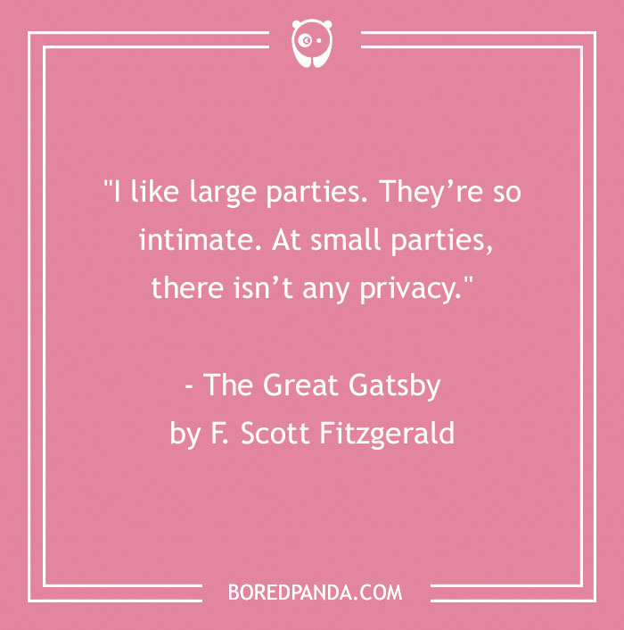 "I like large parties. They’re so intimate. At small parties, there isn’t any privacy." - The Great Gatsby by F. Scott Fitzgerald