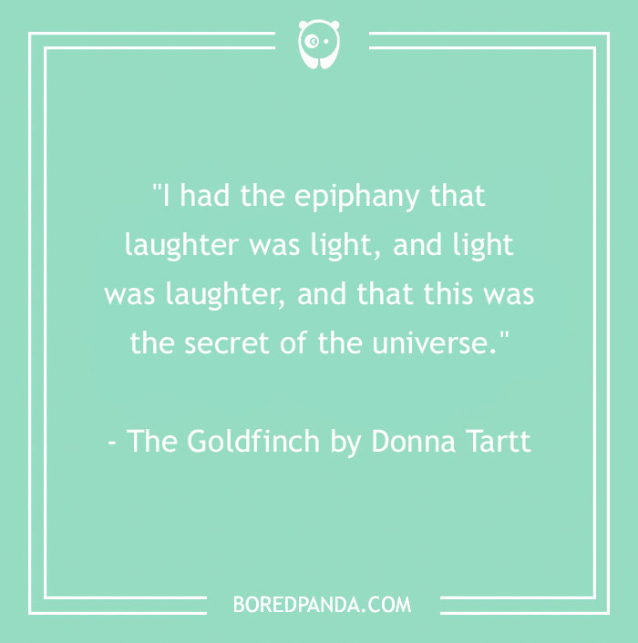 "I had the epiphany that laughter was light, and light was laughter, and that this was the secret of the universe." - The Goldfinch by Donna Tartt